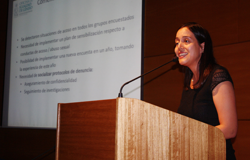 La Decana Morales manifestó que se trata de “un cambio cultural y, como tal, requiere de un trabajo sistemático y desde distintos ámbitos, desde distintos frentes. Por tanto, los que estamos involucrados, los que nos sentimos participes, los que sentimos que esta es una realidad que la queremos modificar, tenemos que transformarnos en agentes de cambio en cada uno de nuestros lugares de desempeño y trabajar en cómo se pueda y en lo que se pueda para educar, culturizar, levantar información para convencer a los que no están convencidos, idear todos los mecanismos posibles, lúdicos y culturales, para reconocer lo que ocurre y erradicarlo”.