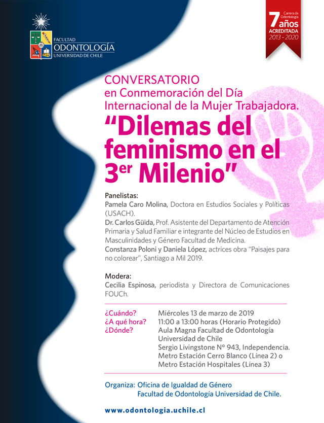 En el interés de dar continuidad a las actividades organizadas por la Oficina de Igualdad de Género en el marco del Día Internacional de la Mujer 2019, se realizará el Conversatorio Dilemas del feminismo en el 3° Milenio.