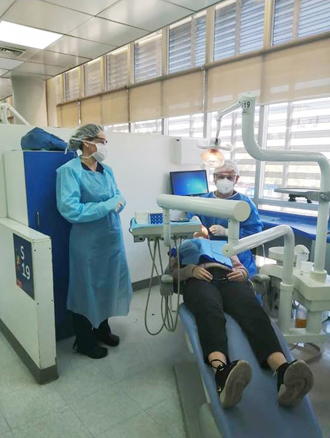 Para evitar concentración de personas en la sala de espera, subrayó la Dra. Véliz, “se ha tomado como resguardo realizar agendamientos distanciados y, además, hemos acondicionado nuestra sala de espera para mantener la distancia social entre las personas. Todo nuestro personal, desde el equipo odontológico hasta el de colaboración, cuenta con todo el equipo de protección personal para llevar a cabo procedimientos seguros y con constante capacitación para respetar las más altas normas de bioseguridad, puesto que nuestro principio indiscutido es brindar la mejor atención y de calidad; y a la vez cuidar y proteger a nuestros funcionarios”.