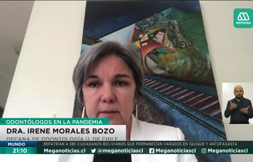 Interesada que acercar las Recomendaciones para la atención odontológica frente a la pandemia por COVID-19/ SARS CoV-2 a la población general y a la comunidad odontológica en particular, laDecana de la Facultad de Odontología de la Universidad de Chile, Prof. Dra. Irene Morales Bozo, intervino en Meganoticias Prime.