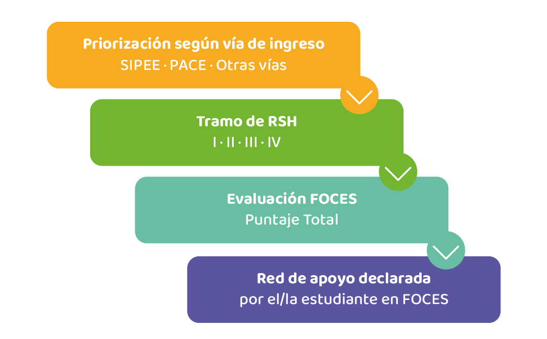 La jerarquización permitirá generar un listado de priorización de los casos presentados a través de FOCES, que da cuenta de la focalización de recursos de acuerdo a parámetros de asignación estatales e internos, esto refleja el compromiso institucional en la generación de una red de soportes estudiantiles dirigido a los y las estudiantes procedentes de contextos socioeconómicos de mayor vulnerabilidad.