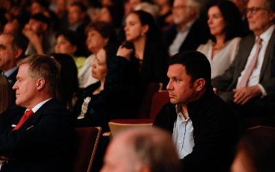 El tradicional encuentro, momento fundamental de la semana de aniversario, se realizó en el nuevo recinto inaugurado este año en el Complejo Universitario VM20. En la ocasión, la Orquesta Sinfónica Nacional y la Camerata Vocal de U. de Chile interpretaron una especial edición conmemorativa del himno de la Casa de Estudios.