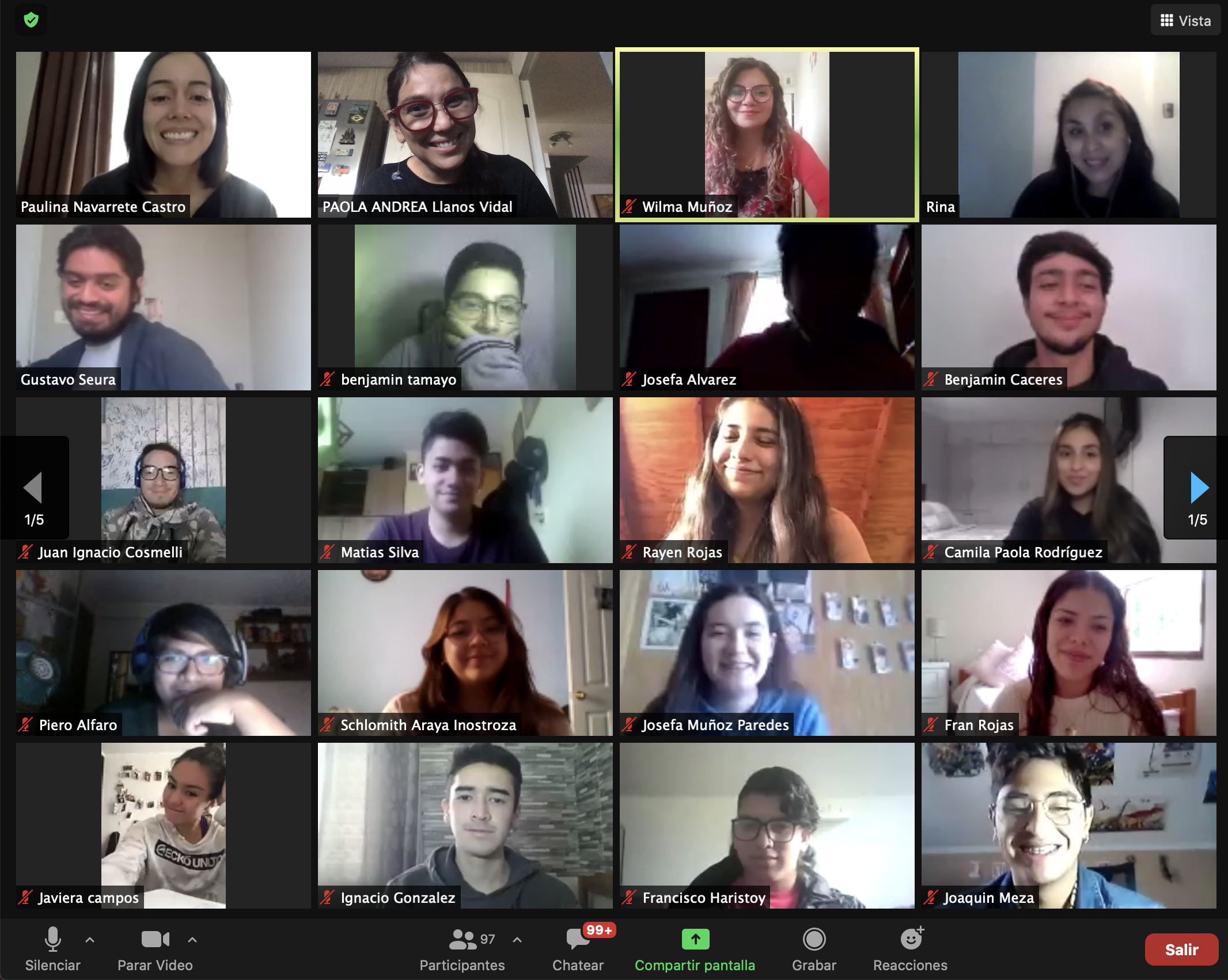 Al finalizar la programación de la semana y con las intervenciones de Camila Mella Oñate, estudiante de 2do año; Pamela Alvarado Nail, estudiantes de 6to año y Pavel Capetillo Reyes, ex estudiante y actual académico de la Facultad, la Coordinadora de Primer Año moderó el espacio donde se compartió “experiencias personales, consejos y mensajes de los invitados, lo que propició un ambiente cálido y relajado en que los mechones y mechonas participaron, de manera lúdica, en un espacio de confianza, en que logramos conocernos un poco, pese a las dificultades de esta modalidad virtual”-
