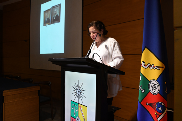 “La conservación y restauración de obras y objetos patrimoniales no es sólo un conjunto de procedimientos, sino una fuente de unión, de identidad y de memoria colectiva. Nos otorga un sentido de pertenencia que, a veces pasa, inadvertido, pero que, en realidad, nos vincula a una historia común. Así como el Dr. Valenzuela Basterrica aportó con su visión y esfuerzo a la consolidación de la Odontología en Chile, cada uno de nosotros, desde nuestros ámbitos de acción, también hemos contribuido a escribir la historia de nuestra Facultad. Conservar y restaurar adquiere una dimensión social: nos recuerda que formamos parte de un entorno al que pertenecemos y del que somos responsables”, aseguró la Dra. Claudia Sommariva, al tiempo que reflexionó que “hoy, al contemplar este óleo restaurado, so sólo rendimos homenaje a una figura fundamental de nuestra historia, sino que reafirmamos nuestro compromiso con la conservación de nuestra memoria institucional”.