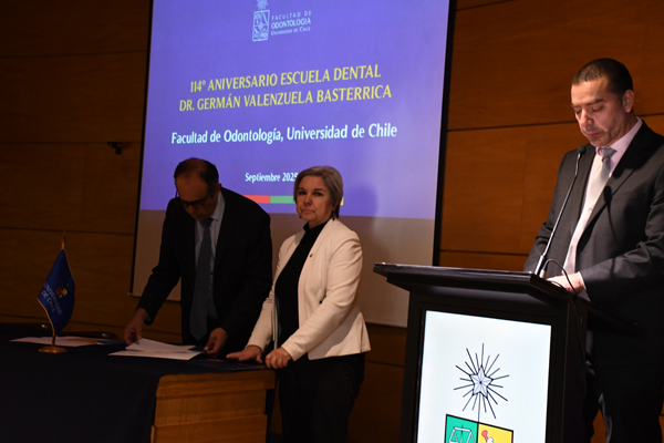 Con una solemne y simbólica ceremonia que reunió a la comunidad odontológica, la Facultad de Odontología de la Universidad de Chile (FOUCh), conmemoró el 114° Aniversario de la Escuela Dental Dr. Germán Valenzuela Basterrica, el pasado viernes 12 de septiembre de 2025.