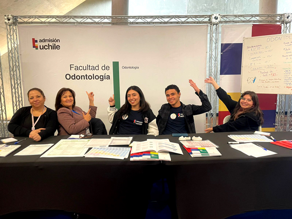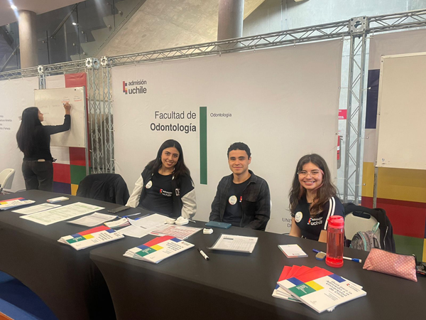 Interactuando con los miles de escolares que visitaron la Feria de Orientación a las y los Postulantes UCHILE, académicas, académicos, estudiantes y personal de colaboración de la Facultad de Odontología dieron a conocer la carrera, el sello público y la proyección del campo laboral.