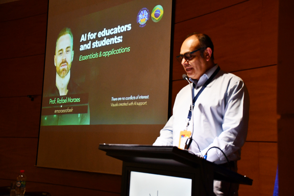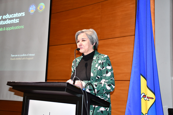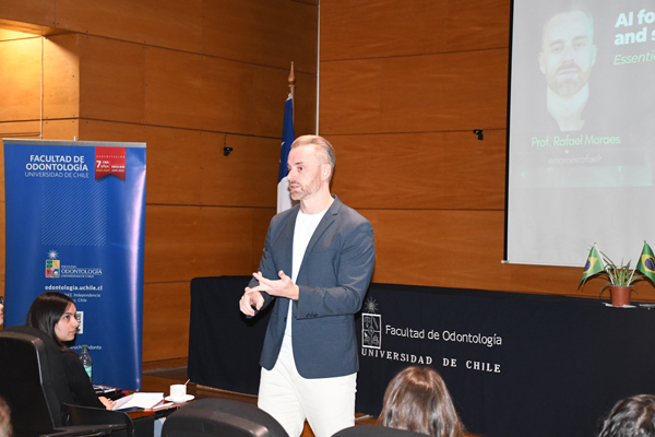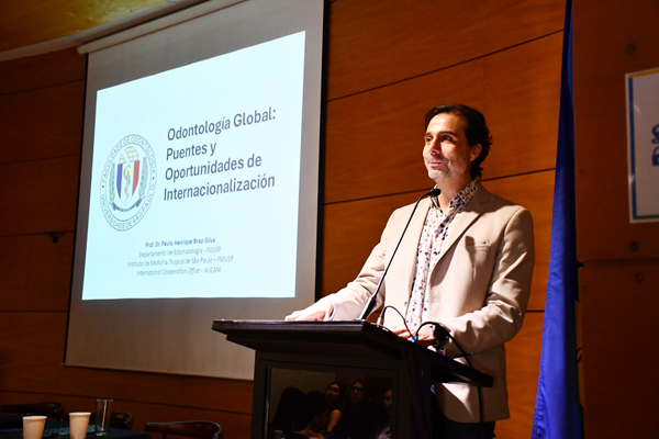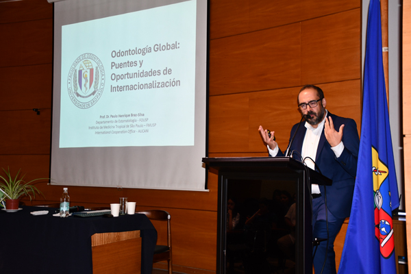 Durante su intervención en la sesión inaugural, el Vicedecano, Dr. Rodrigo Cabello Ibacache se refirió a la tradición de la cooperación entre países que comparten desafíos y valoró instancias docentes como las co-tutelas. “Más que una conferencia, es una invitación a estrechar lazos con un país hermano y una potencia científica, cultural y sanitaria de América Latina. Brasil no sólo comparte con Chile desafíos comunes en Salud Oral y Educación Superior, sino también ofrece una vibrante unidad académica, infraestructura de investigación de alto nivel y una tradición de cooperación que, sin duda, debemos fortalecer”, sostuvo el Vicedecano.