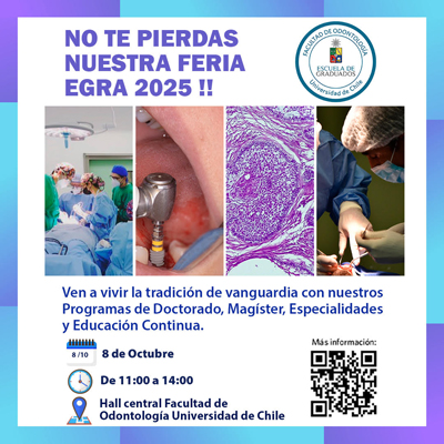 Con alta convocatoria y gran entusiasmo, la comunidad estudiantil de la Facultad de Odontología de la Universidad de Chile (FOUCh) participó de la Feria de la Escuela de Graduados (EGRA), que se llevó a cabo en el Hall Central el miércoles 8 de octubre pasado.