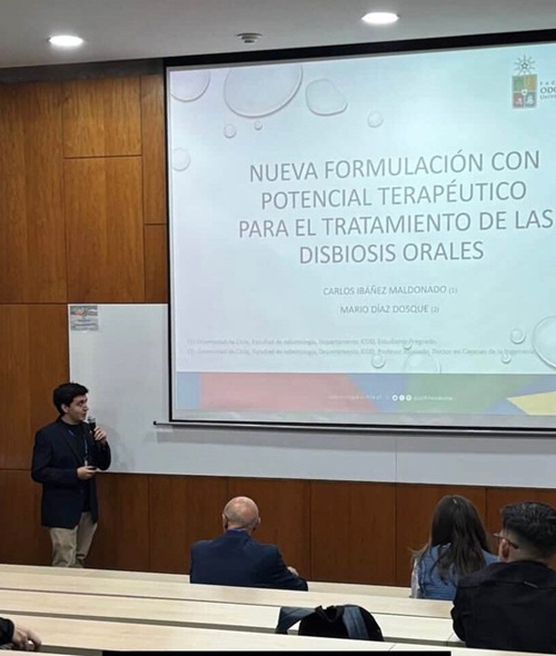 Para Carlos Ibáñez, este reconocimiento “es muy valorado y agradecido, ya que este trabajo se lleva construyendo desde hace 2 años, junto con nuestro tutor Mario Díaz, pero además es resultado de años de investigación en el Laboratorio de Farmacología, del Instituto de Investigación en Ciencias Odontológicas (ICOD), por parte de profesores y estudiantes”. El estudiante precisó que espera “seguir buscando alternativas terapéuticas prometedoras frente a las enfermedades orales más prevalentes y, aunque sea un primer paso, debemos continuar investigando para que este y otros trabajos puedan llegar a usarse clínicamente como tratamiento, con el fin de mejorar la calidad de vida de las personas que sufren este tipo de enfermedades”.
