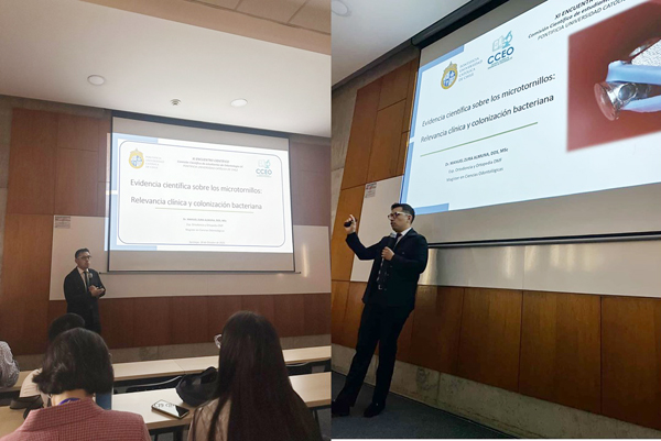 En la oportunidad, el Dr. Manuel Zura, académico del Departamento del Niño y ODM de nuestra Facultad de Odontología, dictó la conferencia “Evidencia científica sobre los microtornillos: relevancia clínica y colonización bacteriana”.