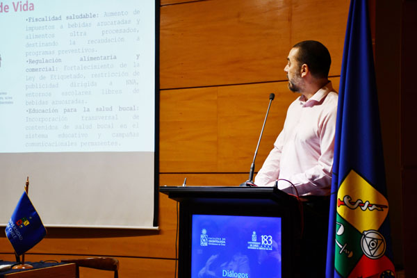 A continuación, el Dr. Mauricio Baeza Paredes, Director del Departamento de Odontología Conservadora y de la Dirección de Investigación FOUCh, expuso las Propuestas, abordando cada uno de las temáticas: Salud Bucal en la ECICEP; Campaña “80/20" para Chile; Estrategia de Salud Bucal Preventiva durante el Curso de Vida; Listas de Espera y Acceso oportuno a la Atención Odontológica; Vigilancia e Investigación en Salud Oral en Red; Recursos Humanos en Salud Bucal y Modelo de Gobernanza y Financiamiento en Salud Bucal.