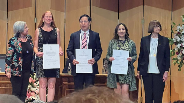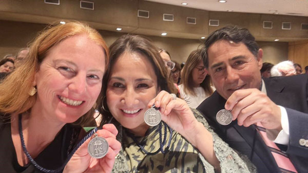 En el marco de la celebración del 183° Aniversario de la Universidad de Chile, la Dra. Susanne Krämer Strenger, Dra. Marcela Alcota Rojas y Dr. Pablo Ángel Aguirre, recibieron la Medalla Rectoral y Diploma en reconocimiento a lograr la más alta jerarquía académica en la Universidad de Chile, Profesora y Profesor Titular.