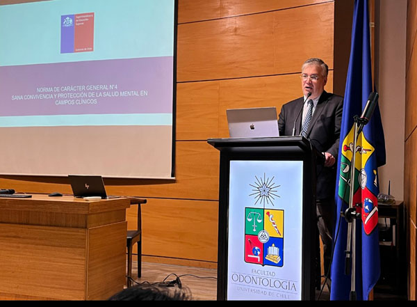 Con el propósito de orientar la reflexión sobre la implementación de la Norma de Sana Convivencia y la protección de la Salud Mental en contextos de formación clínica, el Superintendente de Educación Superior, Sr. José Miguel Salazar, dictó charla en la Facultad de Odontología de la Universidad de Chile (FOUCh), en el contexto del cierre del Curso de Buenas Prácticas Docentes, organizado por el Comité de Buenas Prácticas Docentes de la Facultad de Medicina.