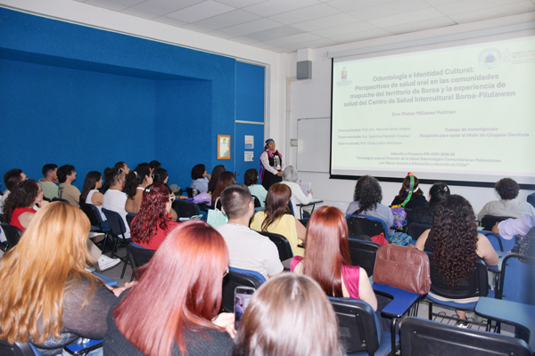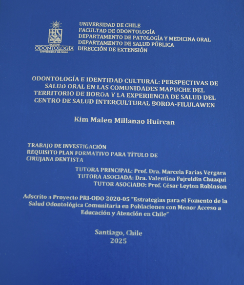 La Tesis de Investigación de la Dra. Kim Millanao no sólo fue un requisito académico, sino un acto de retribución y visibilización, dado que su motivación nació de las carencias observadas en su territorio de origen. "Me di cuenta de que había muy pocos antecedentes epidemiológicos en Salud de pueblos indígenas. En Boroa veía muchas personas que no tenían dientes o usaban prótesis sin redes de apoyo, por lo que quise hacer mi Tesis en retribución a cómo me crié y para visibilizar la discriminación que me tocó vivir en Santiago; que es un tema que pasa muy por debajo en la Universidad".