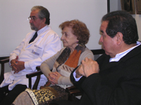 La ceremonia de entrega de los libros estuvo encabezada por el Decano de la Facultad de Odontología, Prof. Dr. Julio Ramírez Cádiz, quien fue acompañado por el Vicedecano, Prof. Dr. Francisco Omar Campos Sanhueza; la Directora Escuela de Pregrado, Prof. Dra. Susana Encina Moriamez; el Director del Departamento del Niño y Ortopedia Dentomaxilar, Prof. Dr. Raúl Carvajal Álvarez; el Director de Relaciones Internacionales, Prof. Dr. Luis Felipe Jiménez Squella; la Directora de Extensión, Prof. Marta Gajardo Ramírez; el Director de Biblioteca de Odontología, Sr. Luis Flores Lazcano; y la Srta. Macarena Alvarado Arzola, alumna de 6º Año de la carrera de Odontología, que realizó su Tesis de Grado en Odontología Forense.